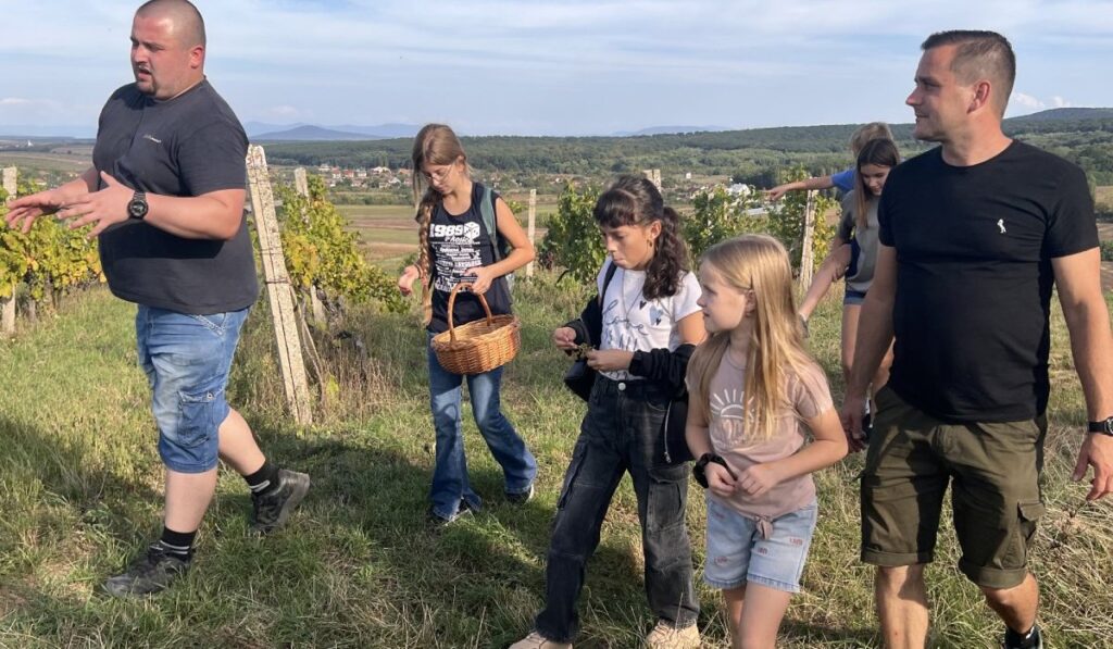 A szeptemberi nyári napok egyikén a beregszászi római katolikus egyházközség hittanosaival a kígyósi szőlőhegyre indultunk. Amikor kiszálltunk a buszból, egy hatalmas szőlőtáblán találtuk magunkat, ahol már várt ránk a szőlőgazda és borász Sass Krisztián. Ő vezette körbe a kis csoportot a területen, és mesélt a szőlőtermesztésről, a szüret mindennapjairól.
