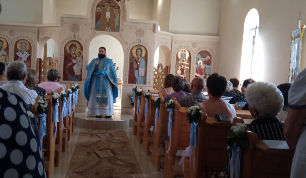 A szent liturgia végén a jelen lévő papok megszentelték a templom előtt álló keresztet, melyet nemrég újított fel az egyházközség, majd körmenetet tartottak. A búcsú miroválással és szeretetlakomával ért véget.