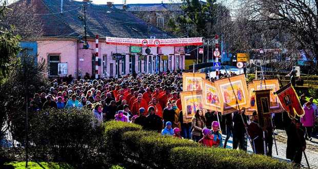 Innen indult el az a közel negyven kárpátaljai településről érkező görögkatolikus, református és római katolikus hívek alkotta zászlós menet, melyben a súlyos, ácsolt fakeresztet felváltva hordozták a papok, a betegek, az özvegyek, a pedagógusok, az egyháztanácstagok, a lelkészfeleségek, az édesapák és az édesanyák.