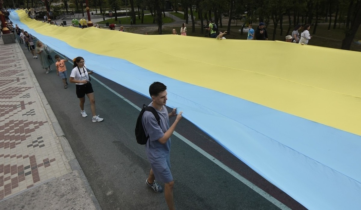 Egy 430 méteres zászlót bontottak ki Kijevben, mely szimbolikusan a Dnyeper jobb és bal partját közi össze – írja az ukrinform.net.