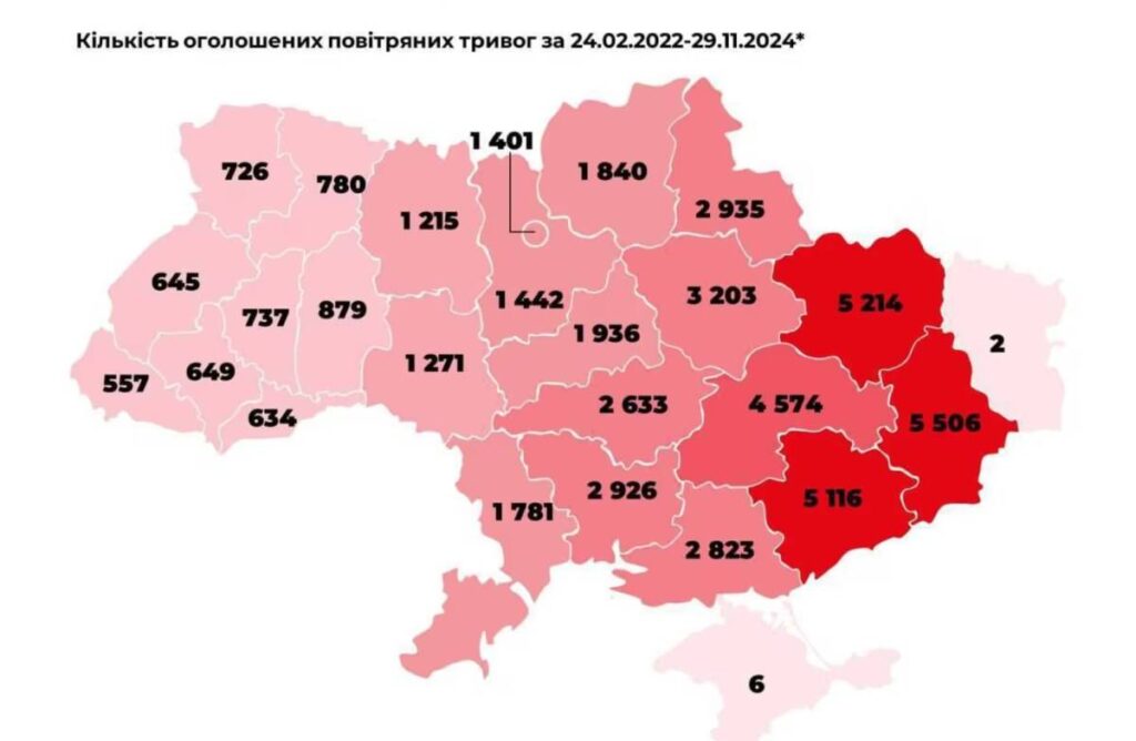 A teljes körű orosz invázió kezdete óta Ukrajnában több mint 50 ezer légiriadó volt országszerte – közölte az UA War Infographics a Telegram-csatornáján november 30-án.