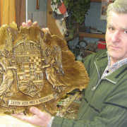 – Komolyabban a szuveníres időkben kezdtem el faragni. De a válság után minden bedöglött, új foglalkozás után kellett néznem. Egy budapesti ismerősöm kérésére oklevelekre készítettem faragott kereteket. Aztán hozott egy címerrajzot is, hogy faragjam ki. Az már egy komolyabb munka volt, de megérte, mert 5-6 évig hozott nekem aztán foglalkoznivalót, főleg címereket. Amikor pedig nyugdíj előtt álltam, de nem volt munkám, csak foglalkoznom kellett valamivel, mert meg kellett élnem. A kenyérre, sóra valót ezzel szedtem össze. Meggazdagodni ebből nem lehet, de sok munkával kevés jövedelmet lehet éppen szerezni vele. Mostanában főleg házi áldásokat, magyar címereket, településcímereket kérnek tőlem. Sok holmit Magyarországra visznek ajándékként. Az eddigi legnagyobb méretű munkám is Magyarországra került. Ez egy 2,20×1,50 m tölgylap volt, amire rávéstem egy falu körvonalát és feltüntettem rajta a falu jellegzetes épületeit. Faragtam már portrékat is kis hordókra. Apró használati tárgyakat nem készítek. 2000-től évente járok Magyarországra nemzetközi fafaragó táborokba. Mindig tanultam valamit, amikor ott voltam. Igazából mindannyian tanulunk valamit a másiktól.