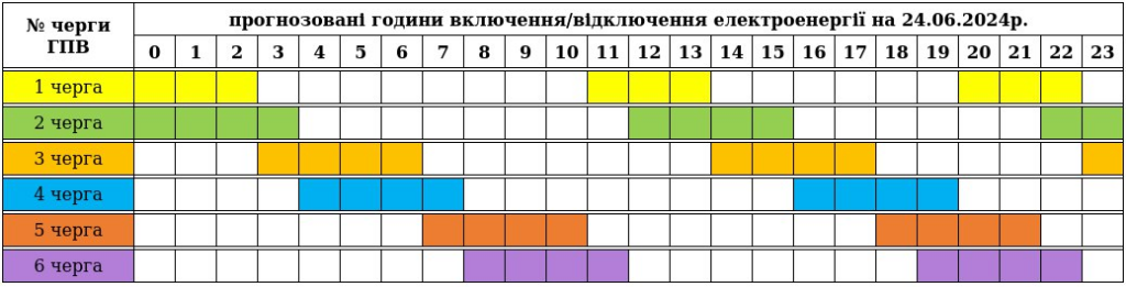 A június 24-ei óránkénti áramszünetek ütemterve