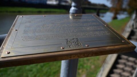 Az emléktábla a filharmónia közelében, az Ung folyó feletti korláton kapott helyet.