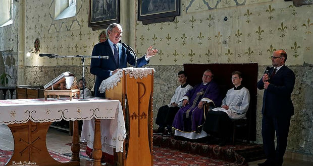 Az AMK küldöttsége vasárnap délelőtt szentmisén vett részt a beregszászi római katolikus templomban. A szertartás végén George Pataki beszédet mondott a templomot zsúfolásig megtöltő hívek előtt. A volt kormányzó aggodalmának adott hangot a kárpátaljai magyarságot a központi ukrán hatalom részéről sorozatban érő jogsértések miatt. Hangsúlyozta, Kijevnek tudomásul kell vennie, hogy a kárpátaljai magyarok lojális polgárai Ukrajnának, amit azzal is bizonyítottak, hogy eddig 13 magyar esett el a kelet-ukrajnai harcokban, és több száz magyar vett és vesz részt katonaként az ország védelmében.