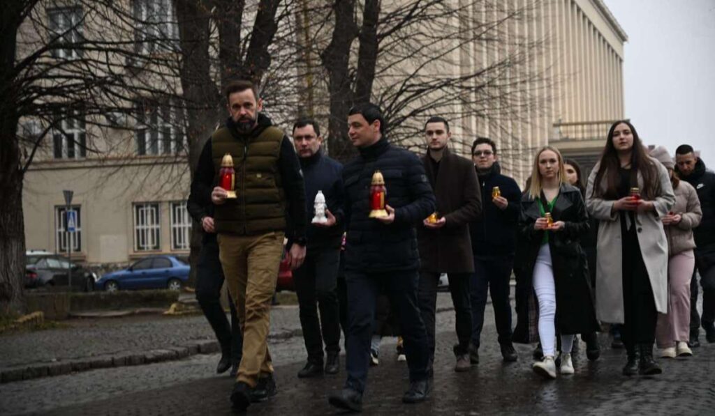 Beregszászban is megemlékezést tartottak február 20-án a Mennyei Század hőseinek felállított emlékmű előtt.