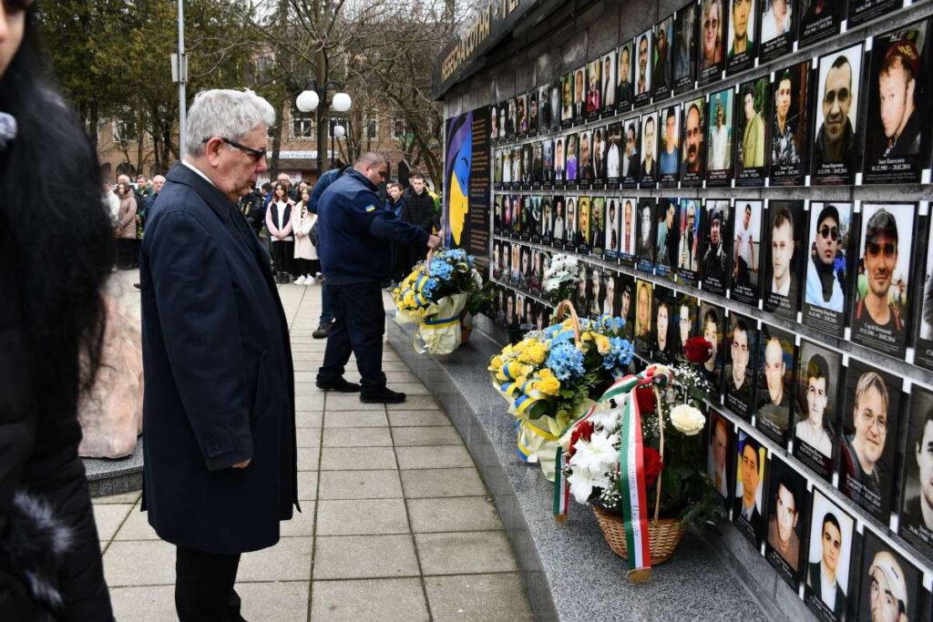 Ungváron szintén megemlékezést tartottak. Viktor Mikita, a Kárpátaljai Megyei Katonai Közigazgatási Hivatal vezetője és munkatársai, Roman Szaraj, a Kárpátaljai Megyei Tanács elnöke és ungvári diákok egyperces néma csenddel adóztak a hősök emlékének, majd a Narodna (Népi) téren felállított emléktáblánál mécseseket helyeztek el.