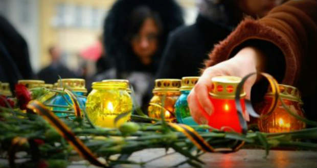 A megyeszékhelyen mécseseket gyújtottak az állami adminisztráció épületénél, és ukrán nemzeti színű lampionokat engedtek a magasba az elesettek emlékére.