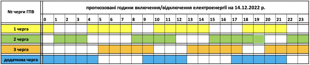 A Zakarpattyaoblenerho megyei áramszolgálató közzétette a december 14-ei áramkimaradások listáját. Mint írják a lekapcsolásokat a vészleállás mind a négy szakaszában végrehajtják.