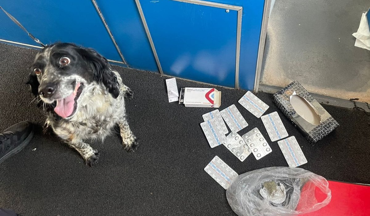 Az illegális szert a szolgálati kutya szagolta ki a vonat vécéjében. A kutya jelzésére a határőrök átvizsgálták a mellékhelyiséget, ahol szürkészöld anyagot, valószínűleg kannabiszt, valamint fentanilt tartalmazó tablettákat találtak. A kábítószert egy csomagban rejtették el, amit a szemetesbe dugtak.