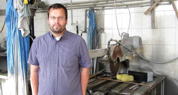 – A sírkövezés mestersége apáról fiúra öröklődik. Mivel apósomnak nem volt fiúgyermeke, így én, vagyis a vő vettem át tőle. Elég nehézkes és bonyolult folyamat ez. A munka az alapanyag beszerzésével kezdődik, amikor ki kell menni a bányába és kiválasztani a megfelelő kőtömböt. Aztán következik ennek a feldolgozása. A folyamat hosszú és sok buktatója van. Csak idősebb mesterektől lehet megtanulni, ellopni, mert senki nem adja ki idegeneknek a szakmai titkait. A műköves munkákhoz meg kell tanulni a keverési arányokat és betonból kiönteni különböző formákat. Minden egyes munkafolyamatot külön meg kell tanulni és begyakorolni ahhoz, hogy egy műhelyt vezetni tudjon valaki. Mindenhez értenie kell az embernek, hogy egy egészet tudjon alkotni. Szalagmunkaként nem megy, mert nem lenne tökéletes a végeredmény. Egészben kell gondolkodni, az alaptól egészen a sírkő lapjáig. Bő tíz év kellett hozzá nekem, hogy a munka mai szintjéhez elérjek. Most a betűvágás részét viszem én, de nekem is meg kellett tanulnom önteni, csiszolni, fényezni, és csak ezek után jött a természetes kövekkel való munka. A kőbeszerzés hihetetlenül macerás, mivel az országban gyakorlatilag nincsenek bányamérnökök. Van például nálunk olyan bánya, amit 1947-ben nyitottak, és már tönkrement. Az olaszországi carrarai márványbányát Kr. e. 800-ban nyitották meg, és ma is működik. Ennyit jelent, ha valaki ért a bányászathoz. A megrendelők sokszor nem igazán tudják, mit is szeretnének. Mindegyik megrendelés különbözik a másiktól. A keret sokszor egyforma, de a sírkő már nagyon ritkán. Fejfából pedig több száz van. Mivel a síremléknek négy sarka van, így legalább 4 ember kell a kiszállításához is. Az „egyfős” mester ritka. Egy köbméter kő súlya majdnem 3 tonna. Egy egyszerű váza, ami a legkönnyebb dolog nálunk, 30 kiló. Mi négyen dolgozunk a műhelyben. A betűvésést már géppel végezzük. A kézi vésés veszélyes, mert munka közben az ember arcába, aztán a tüdejébe kerül a kőpor. Sokszor jönnek hozzánk, hogy javítsuk ki valaki más munkáját. De csak ritkán tudunk segíteni, mert az ember nem vállalhat felelősséget azért, amit nem ő készített.