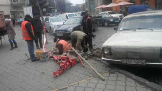 Az Ungvár központjában található Kobzar üzlet mellett akadálymentesítik a járdát. A felújítás nagyban megkönnyíti a kerékpárosok, babakocsit toló anyák és a mozgássérültek közlekedését.