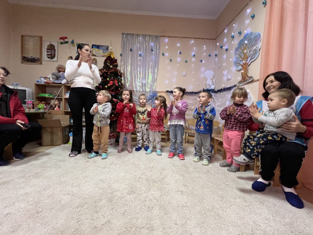Kovács Ágnes, az óvoda igazgatóhelyettese sok szeretettel köszöntötte az Anyaországból érkezett vendégeket. Megköszönte, hogy karácsony idején nem feledkeznek meg róluk és sok ajándékkal érkeznek.