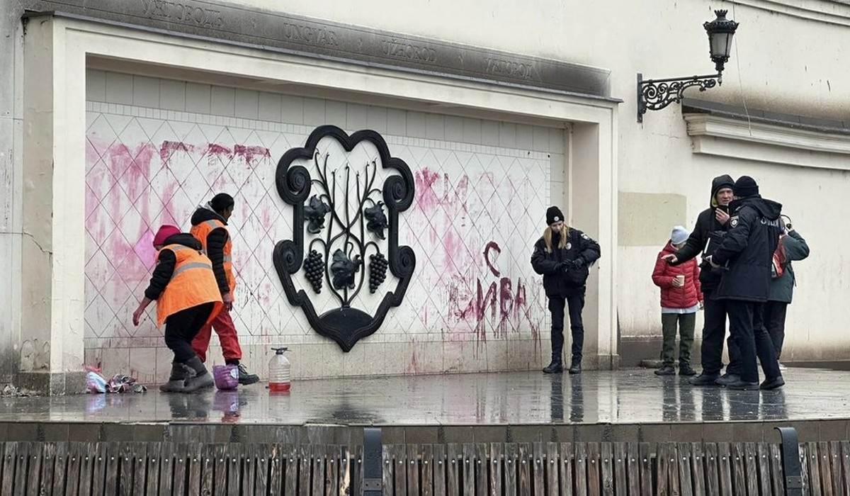 Ismeretlen személyek antiszemita feliratokat festettek az ungvári Színház (Teatralna) tér egyik falára december 24-én.