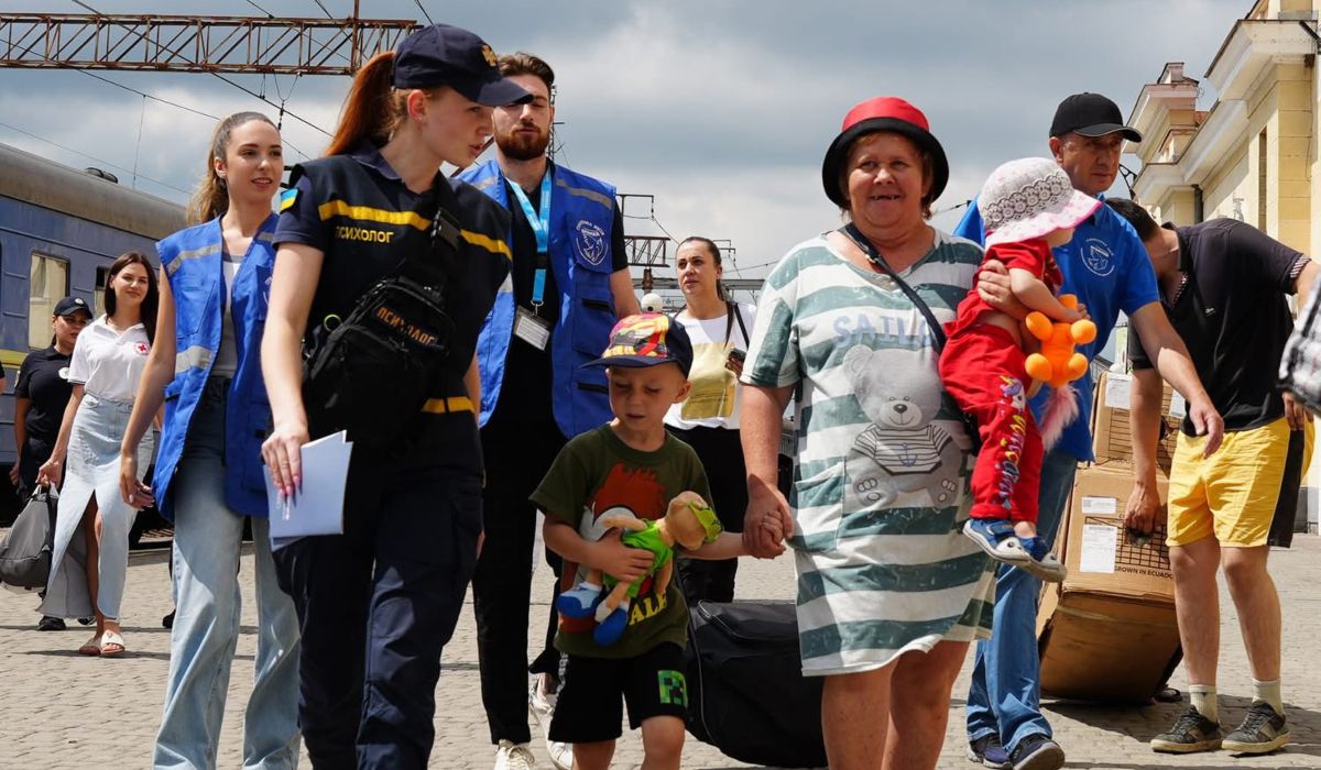 A munkácsi vasútállomásra két édesanya és négy gyermek érkezett a háborús övezetből. Az állomáson mentősök, orvosok, pszichológusok, a megyei szociális osztály szakemberei, civil szervezetek képviselői és önkéntesek várták őket.