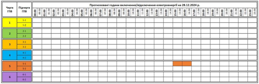 A Zakarpattyaoblenergo megyei áramszolgáltató közzétette a december 28-i óránkénti áramkimaradások ütemtervét.