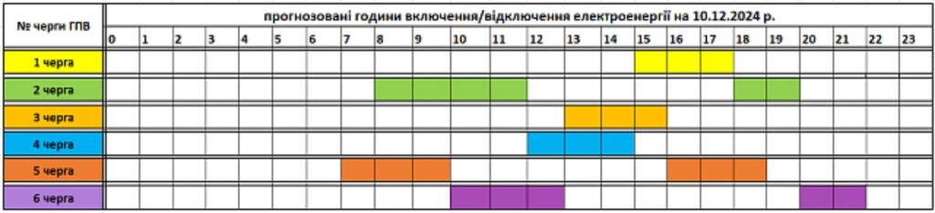 Közzétette a Zakarpattyaoblenerho megyei áramszolgáltató a december 10-i óránkénti áramkimaradások ütemtervét.