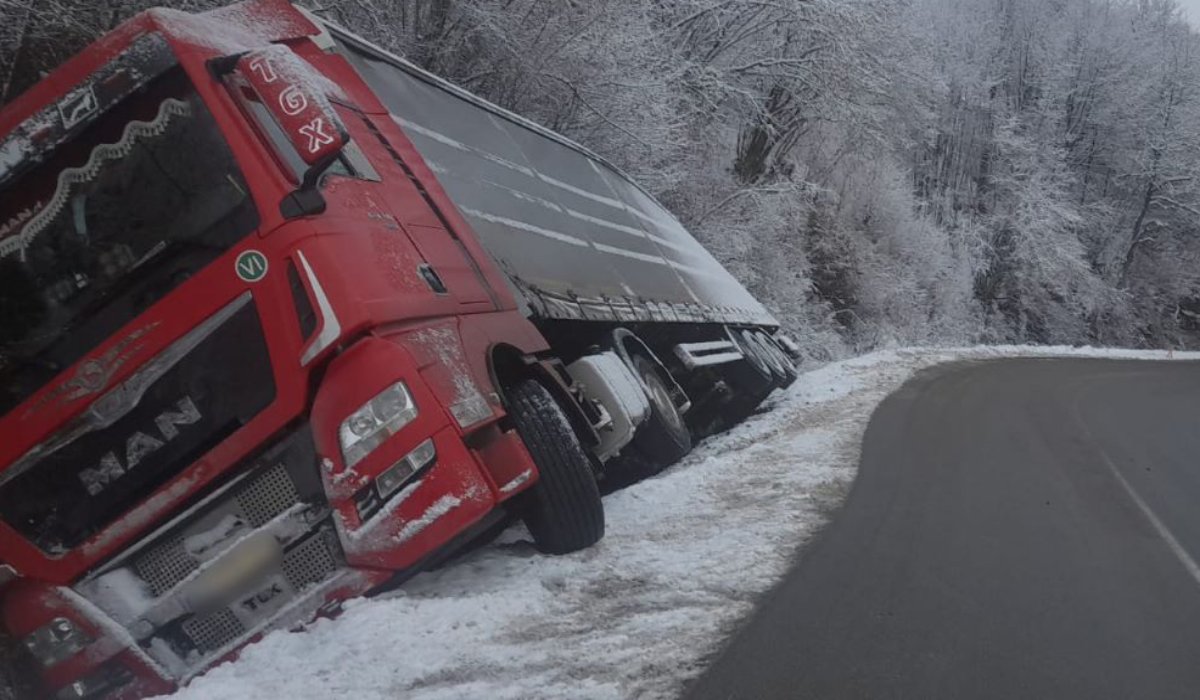 A sofőr a csúszós úton elvesztette az irányítást a járműve felett, így a kamion az út szélére sodródott. A járművezető nem sérült meg.