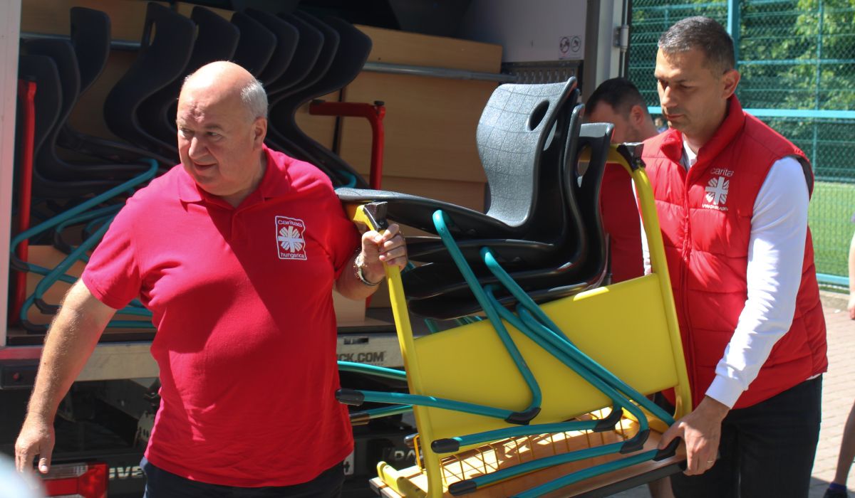 „A Katolikus Karitász ezt az adományt német segítséggel küldte ebbe az iskolába. Németországi támogatóink célzottan a kárpátaljai magyarság megsegítését tűzték ki célul, és mi örömmel közvetítettünk, és hoztuk el ezeket. Reméljük, hogy az iskolában minden szék és pad megtalálja a helyét, és minden székre jut magyar gyerek”