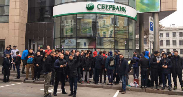 Az ukrán radikálisok azért tartanak ilyen akciókat, mert a Szberbank március közepén bejelentette, hogy elfogadja az önkényesen kikiáltott két kelet-ukrajnai szakadár népköztársaság által kiállított igazolványokat is. A tiltakozók szerint ezzel a lépéssel a bank a Donyec-medencei szakadár területeket támogatja.