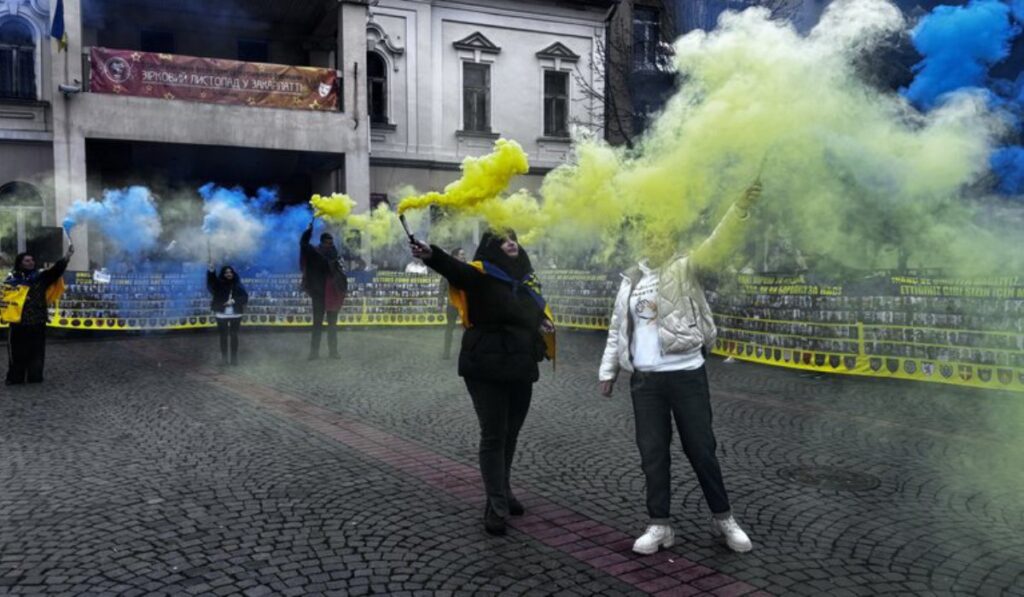 A rendezvényen bemutattak egy 170 méter hosszú ukrán zászlót, amelyen 5800 eltűnt vagy hadifogolyként nyilvántartott védő fényképe látható.