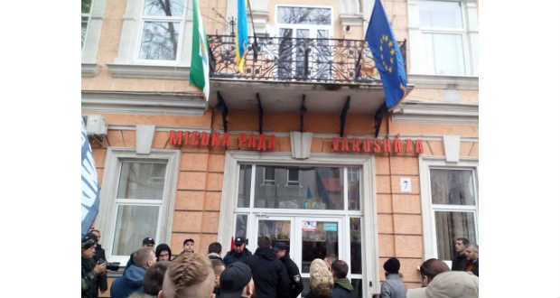 Garázdaság címén indított büntetőjogi eljárást az ukrán nemzeti rendőrség beregszászi osztálya amiatt, hogy vasárnap a város utcáin masírozó ukrán nacionalisták önkényesen levették a magyar nemzeti lobogót a városháza épületéről.