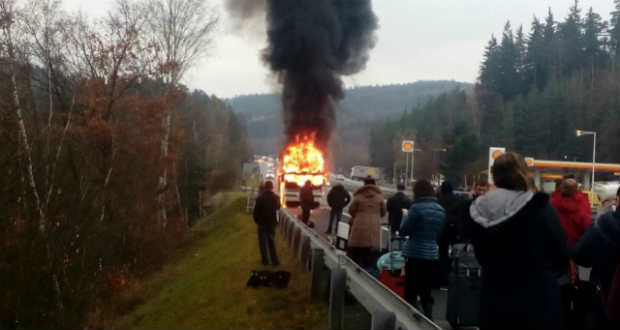 Csehországba tartó busz égett ki a Rahói járásban