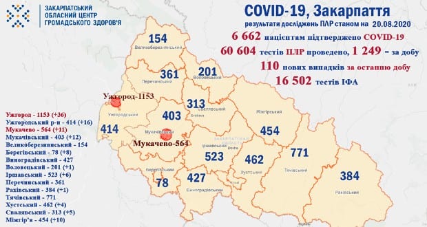 A Kárpátaljai Megyei Közegészségügyi Központ augusztus 19-i adatai szerint 110 koronavírussal fertőzött beteget regisztráltak az elmúlt 24 órában – tudatta a központ a közösségi oldalán.
