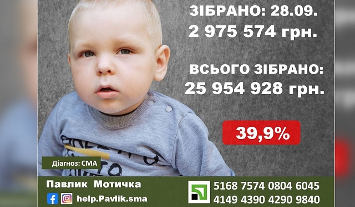 Egy névtelen adakozó megduplázta a Kárpátaljai Megyei Tanács által elkülönített pénzösszeget Pavlik Moticsko gyógykezelésére. Ezáltal szeptember 28-án egymillió hrivnyát utalhattak át a kisfiú megsegítésére.