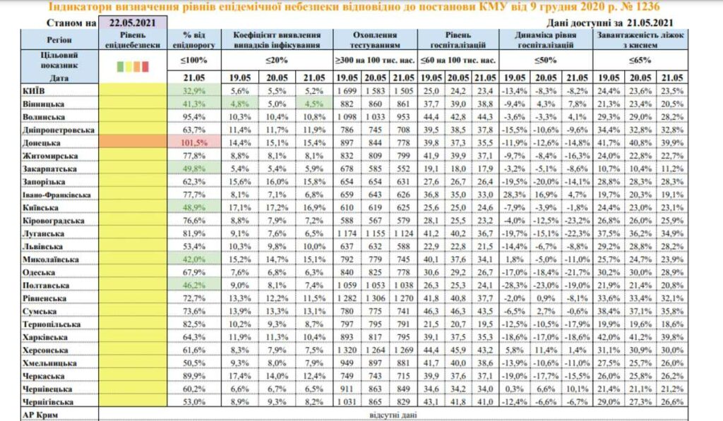 Ukrajna Egészségügyi Minisztériuma május 21-én frissítette az ország régióinak karanténbesorolását.