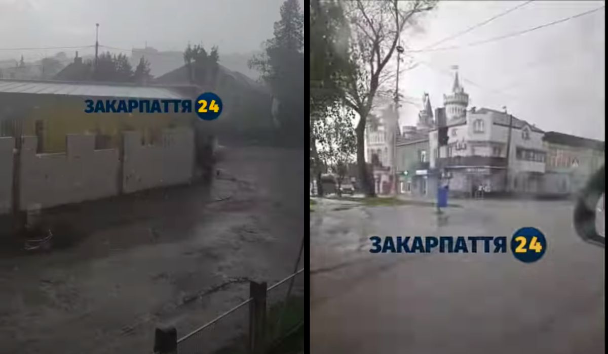 A Zakarpattya 24 hírportál felvételt osztott meg arról, hogy Ungvár útjait elöntötte a víz délután.