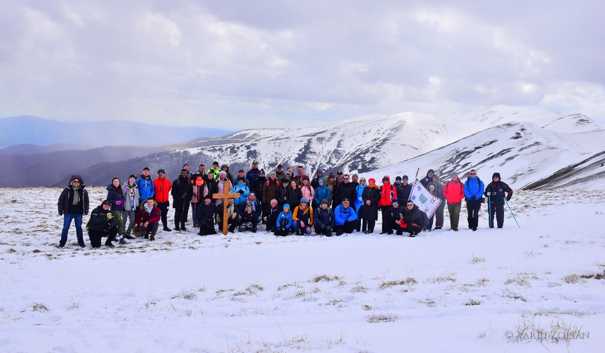 A közel hatórás gyaloglás alatt a tavaszi tájat téli, a napsütést köd, szélvihar és hóesés váltotta fel. Így érték el a túrázók a Firczák-havast, ahol Nílus püspök megszentelte azt a Tóth Gyula túratárs által készített faragott fakeresztet, amelyet a hegycsúcson állítottak fel. A jelenlévők közösen elénekelték a magyar himnuszt és elszavalták az egylet zászlajára hímzett Wass Albert sorokat. Itt adták át az új tagsági igazolványokat és a 10. túra megtétele után járó bögrét.