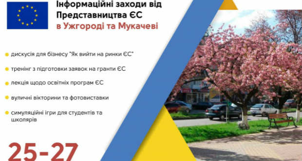 Az európai uniós küldöttség tagjai az Építsük Európát Ukrajnában! nevű program keretében érkeznek hivatalos látogatásra Kárpátaljára április 25–27-e között. Ungváron és Munkácson számos rendezvényt tartanak – adta hírül a Mukachevo.net hírportál április 21-én.