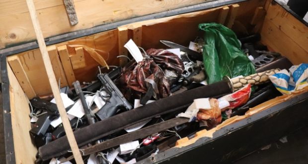 Pisztolyokat, puskákat, késeket és egyéb fegyvereket olvasztottak be Ungváron egy gyár területén a megyei rendőrség munkatársai szeptember 18-án – számolt be róla a mukachevo.net internetes hírportál.