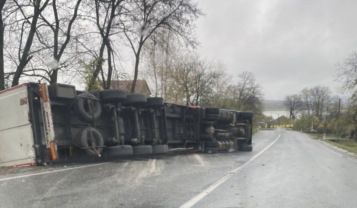 Baleset történt a Munkácsi járásban, Beregkisalmás (Zaluzzsja) közelében vasárnap egy teherautó borult fel az úton – közölte a mukachevo.net hírportál.