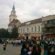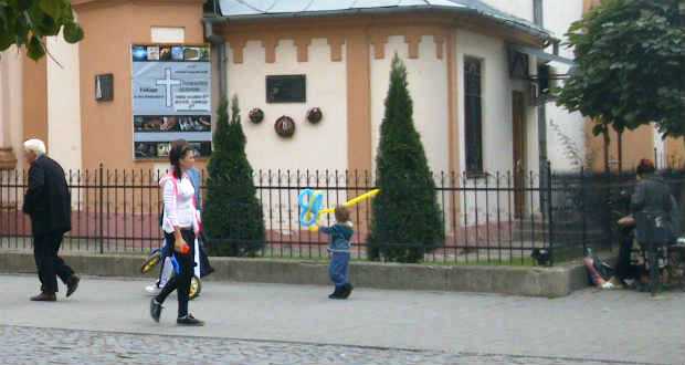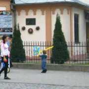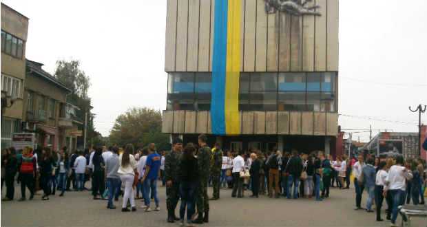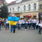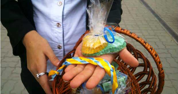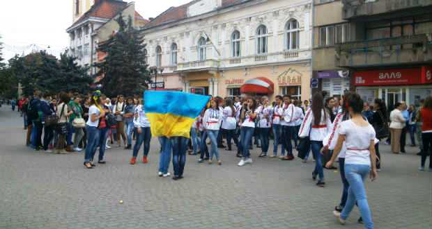 Október elsején délután egy óra körül rendhagyó akciónak lehettek tanúi a Beregszász főterén sétálók. Ukrán népi viseletbe öltözött lányok és katonaruhás fiúk lepték a teret. A fiatalok kosárkával a kezükben szólították meg a járókelőket. A kosarakban ukrán nemzetiszínű megfestett mézeskalács szívek és ugyancsak kék-sárga szalagokból fonott karkötők lapultak. Mint azt a megszólított lányoktól megtudtuk, az akciót a Beregszászi Egészségügyi College („meducsi”) tanárai szervezték. A céljuk az, hogy segítsék a kelet-ukrajnai fronton harcoló katonákat. Az intézmény diákjai által készített mézeskalács figurák darabja húsz hrivnyát kóstált, ezek árusításával kívántak gyűjteni a katonáknak. A diákok lelkesen vettek részt a szervezésben és a kivitelezésben egyaránt, mint mondták, ismerőseik, családtagjaik is vannak a fronton. Az akció leglátványosabb és legmeghatóbb eleme a diákok által kivitelezett villámcsődület (flashmob) volt, melyet videónkban megtekinthetnek.