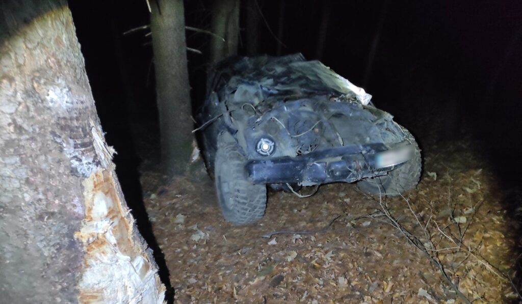 Árokba csúszott, majd a sziklának csapódott egy terepjáró/Fotó: kárpátaljai rendőrség