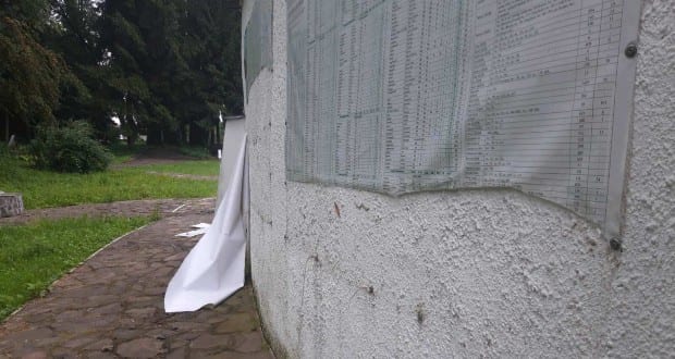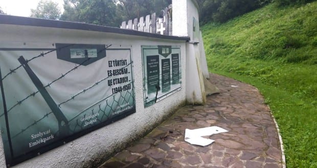 Megrongálták a Szolyvai Emlékparkot július 20-án hajnalban. Ezúttal a siratófal hátoldalán elhelyezett szabadtéri kiállítás anyagának egy részét szaggatták le ismeretlen tettesek.