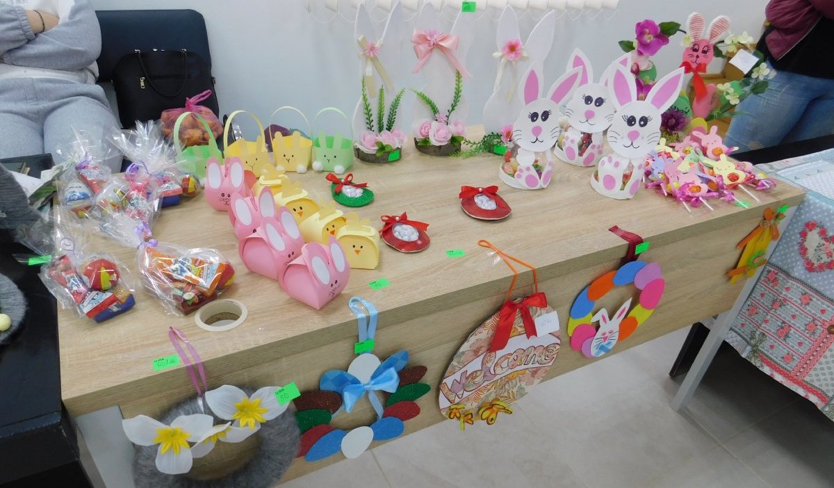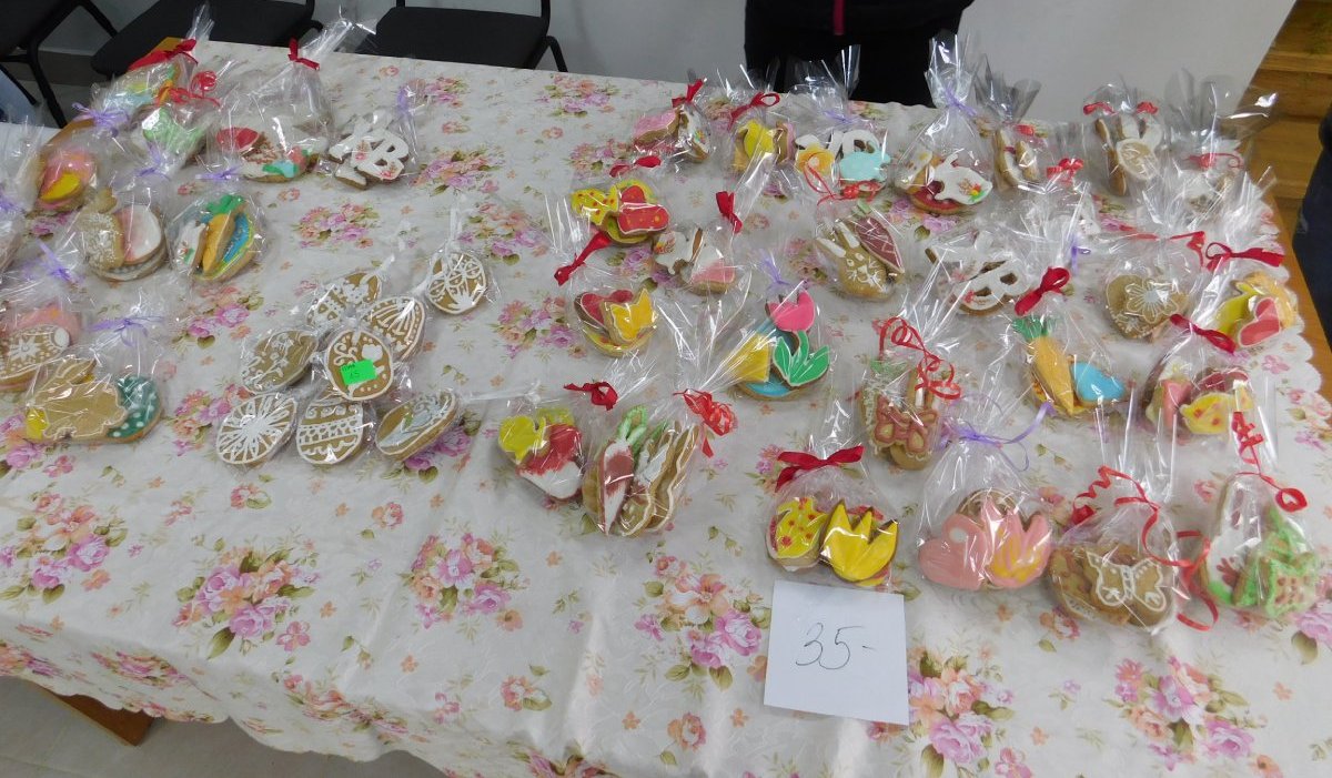 A jótékonysági vásáron széles kínálattal várták az érdeklődőket. Voltak ínycsiklandozó házi készítésű sütemények, szemet gyönyörködtető mézeskalácsok, szebbnél szebb húsvéti témájú kopogtatók és asztaldíszek.