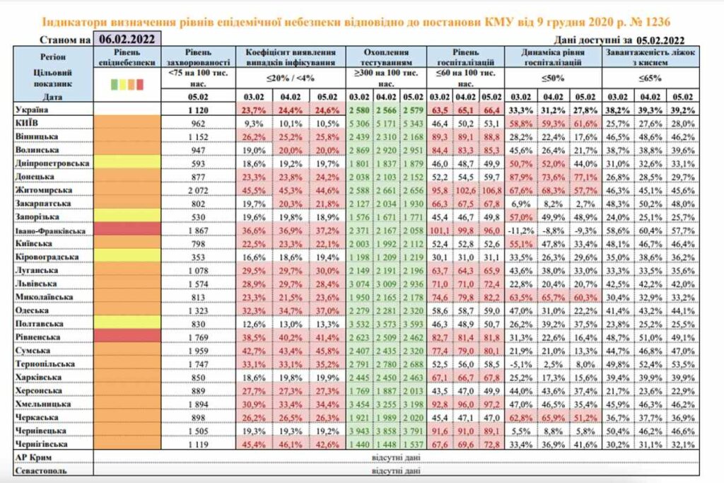 Frissítette Ukrajna Egészségügyi Minisztériuma az ország karanténbesorolását február 5-én.