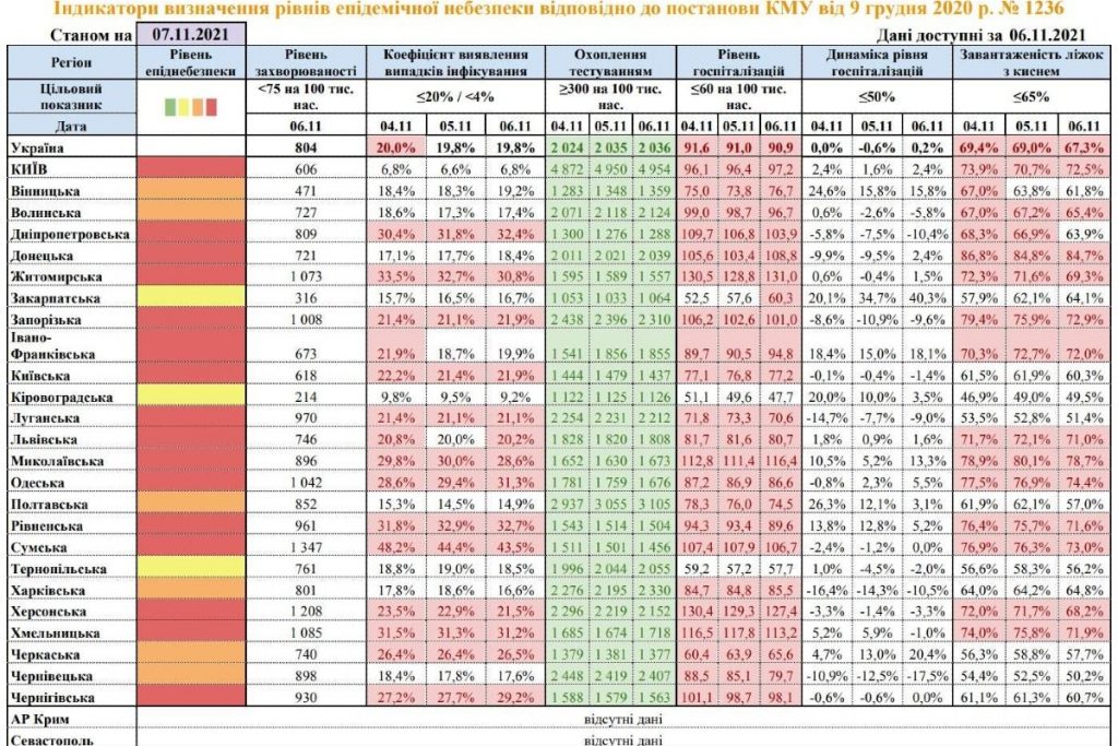 Ukrajna Egészségügyi Minisztériuma november 6-án frissítette a megyék besorolását. Kárpátalja, Kirovográd és Ternopil megye sárga zónában szerepel.
