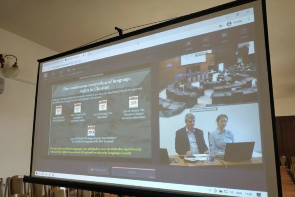 Majd ezt követően Csernicskó István (a II. Rákóczi Ferenc Kárpátaljai Magyar Főiskola rektora) és Hires-László Kornélia (a Hodinka Antal Nyelvészeti Kutatóközpont vezetője) által összeállított színes prezentációval (konkrét esetekkel, nyelvi tájképes fotókkal, kutatási eredményekkel és statisztikai adatokkal illusztrálva) mutatták be a kárpátaljai magyarságot érintő folyamatos jogszűkítések következményeit. Az alternatív jelentésben és az Európai Parlament képviselői számára készített előadásban a szakértők arra hívták fel a figyelmet, hogy a kárpátaljai magyarok nem kérnek mást, csak az eddig megszerzett jogaikat szeretnék megvédeni, illetve megőrizni saját nyelvüket, identitásukat és kultúrájukat.