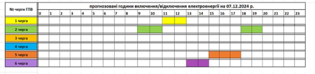 Közzétette a Zakarpattyaoblenerho megyei áramszolgáltató a december 7-i óránkénti áramkimaradások ütemtervét.