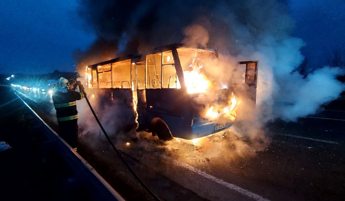 Kigyulladt egy menetrend szerinti autóbusz december 12-én az Ungvári járásban a Kijev–Csap autóúton Alsószlatina (Nizsnje Szolotvino) és Mélyút (Hliboke) települések között.