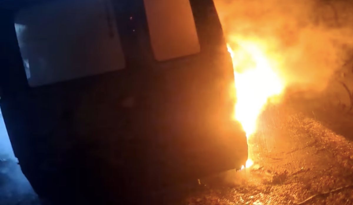 A tulajdonosa hazahajtott, majd kigyulladt a haszonjárműve.