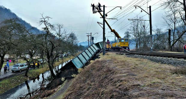 Kisiklott és árokba dőlt egy teherszállító vonat utolsó három vagonja január 10-én a nagybereznai járási Sóslak (Szily) közelében – tudatja a pmg.ua.