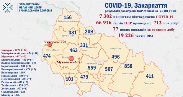 A Kárpátaljai Közegészségügyi Központ augusztus 28-i reggeli adatai szerint Kárpátalján 7 302-re nőtt a koronavírussal regisztráltak száma.