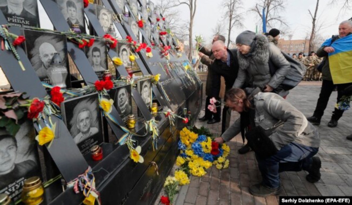 Nyitókép: az összecsapásokban elhunyt emberek emlékműve Kijevben. Forrás: Serhiy Dolzhenko/EFA-EFE