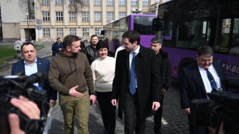 Átadta a Veszprém városa által humanitárius segélyként felajánlott 14 városi autóbuszok első részletét.