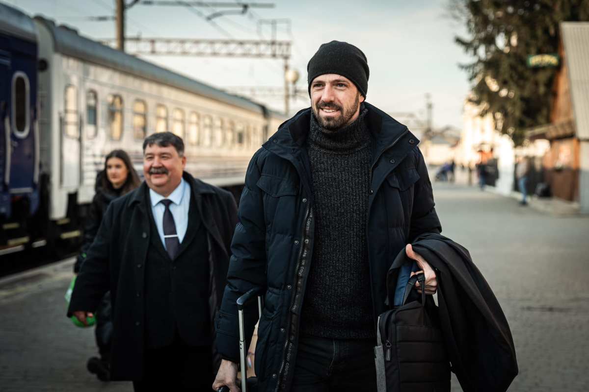 Tizenegy óra vonatozás után megérkezett Kijevbe Magyar Levente, Magyarország Külgazdasági és Külügyminisztériumának parlamenti államtitkára február 12-én.